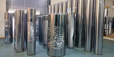 We have 32,000 sq. ft. of manufacturing space and the plant is equipped with modern machinery from Hell Gravures and Daetwyler. The fabrication and plating works are done using CNC controlled equipment. All the facets of the manufacturing are done in-house starting from Base Shell Fabrication, Nickel/Copper/Chrome Plating, Polishing, Engraving, Proofing and Quality Control.